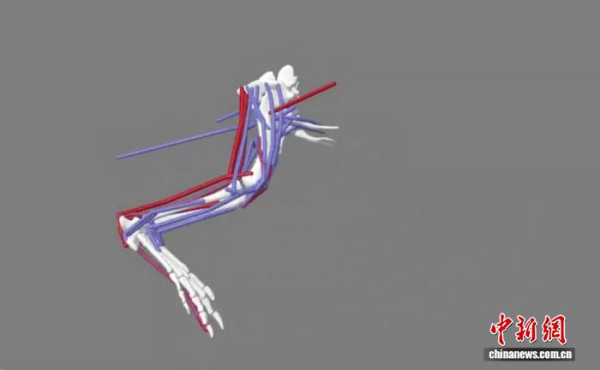 美洲短吻鳄后肢的肌肉骨骼模拟。中国科学院古脊椎所 供图