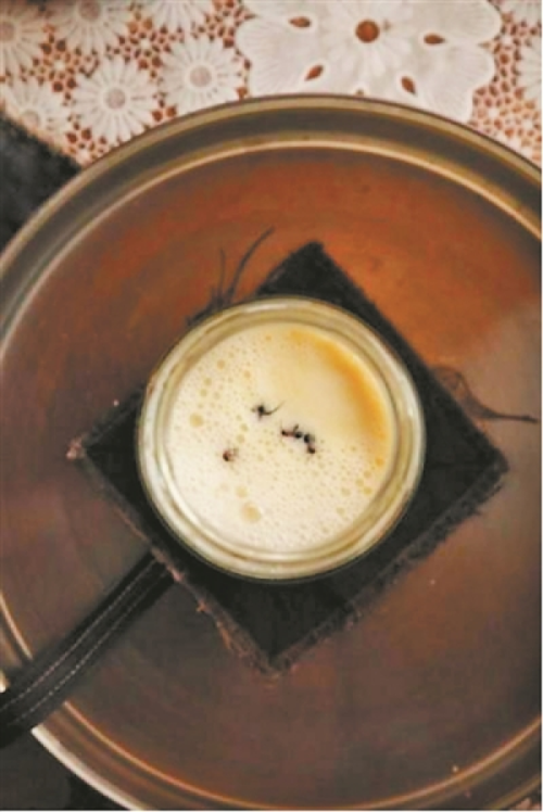按照保加利亚传统的酸奶制作方法,科学家将4只活蚂蚁放入一罐温牛奶中。图片来源:丹麦技术大学