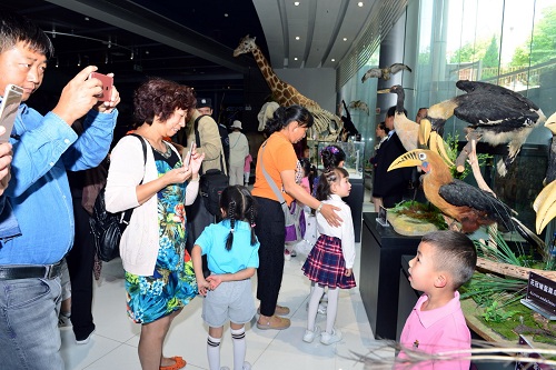 活动在昆明市第二幼儿园非洲小乐鼓表演中拉开序幕。昆明动物博物馆副馆长李维薇以提问的形式引出主题,馆藏的亚洲象、滇金丝猴、白颊长臂猿、西黑冠长臂猿、黑颈鹤、绿孔雀、犀鸟、褐凤蝶、金斑喙凤蝶、格彩臂金龟等十余种濒危珍稀动物标本,以“走秀”的独特方式一一与公众见面,加深了公众对它们的了解。首先出场的是一对明星父子滇金丝猴,它们是昆明99世博会的吉祥物,因为一副红唇被大家所熟知;随后登场的是黑颈鹤,作为世界上唯一生活于高原的鹤类,被藏族同胞誉为“神鸟”,是中国特有鸟类之一;被称为“爱情鸟”的犀鸟组团为大家展示,中国的五种犀鸟均在云南有所分布,在繁殖季节,犀鸟会在高大树木的树洞中筑巢,雌鸟在洞中孵化育雏,雄鸟爸爸在外觅食喂养雌鸟和幼鸟,是模范爸爸的典范;动物界的体操明星长臂猿登场,它们终生离不开森林,是典型的树栖动物代表,长臂猿不但拥有良好的身材,也是动物界“好声音”代表,在清晨可听到其嘹亮动听的歌声,李白诗中的“两岸猿声啼不住”便是对它们的歌声的描写;最后绿孔雀、蝴蝶皇后金斑喙凤蝶、褐凤蝶、格彩臂金龟一一亮相,它们的高颜值获得观众阵阵掌声……此外,长胡子的哀牢髭蟾和凹甲陆龟活体标本也在馆内的小型生态环境中展出。