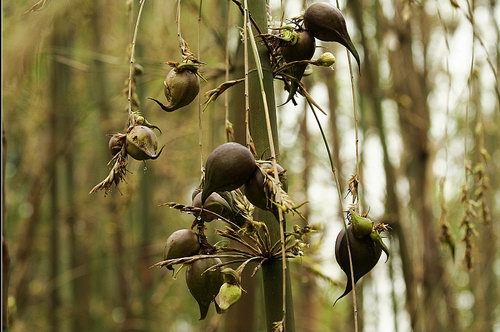 梨竹原产于印度、孟加拉和巴基斯坦等南亚国家。华南植物园自1958年引入此种竹子,已经栽培了50多年,今年终于开花结果了。当时和这些竹子同时种下的小梨竹,早在2005年开始开花结果,之后这几年,几丛小梨竹和梨竹也相继开花结果。今年开花结果的梨竹是最后一批了,过了今年要想再见到竹子结“梨”的奇观,起码要再等50年喽。
