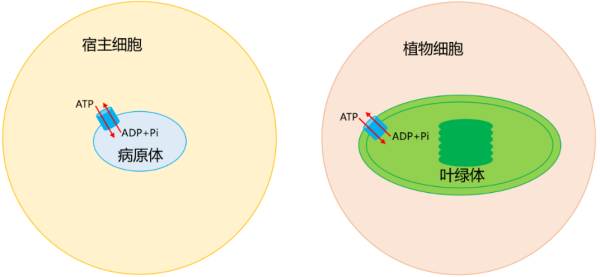 专性胞内病原体如引起性传播疾病和传染性失明的沙眼衣原体以及引起流行性斑疹伤寒的立克次氏体等,因自身能量代谢能力退化,需要依赖宿主细胞获取ATP。它的细胞膜上存在一种ATP运输蛋白,通过等量交换ATP及其水解产物核苷二磷酸(ADP)加磷酸根(Pi),持续从宿主细胞获取能量,确保自身生存繁殖。研究表明,这类蛋白在植物叶绿体等质体细胞器中亦存在,可能源于共生进化,帮助叶绿体高效利用细胞能量。