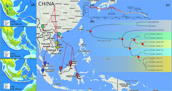 东南亚以其复杂多样的地质演化历史和极高的生物多样性而著称,是全球生物学、生态学及生物地理学研究的重要区域。自新生代以来,该地区经历了剧烈的构造运动、气候波动和海陆格局变化,这些过程不仅塑造了独特的地貌格局,也深刻影响了物种的起源、扩散和遗传结构。然而,关于中南半岛和马来群岛的地理分布格局成因,以及区域物种在长期环境变迁中的迁移扩散模式,仍缺乏系统的实证研究。