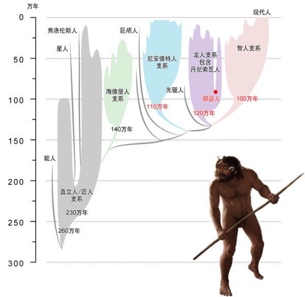 研究团队以郧县人作为关键校准点,构建出全新的人属系统演化树,并推算出各个人类支系的分化时间。