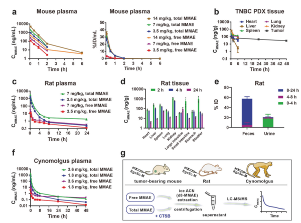 近日,中国科学院杭州医学研究所联合杭州医学所附属肿瘤医院(浙江省肿瘤医院)、湖南大学、上海交通大学及其附属仁济医院,开发出一款靶向蛋白酪氨酸激酶7(PTK7)的核酸适体-药物偶联物(ApDC) Sgc8c-M,并在啮齿类动物至非人灵长类动物的多层次模型中,评估了其抗肿瘤效果、药代动力学与毒代动力学特性及安全性,为阐明ApDC药物特性及推动其临床转化奠定了基础。