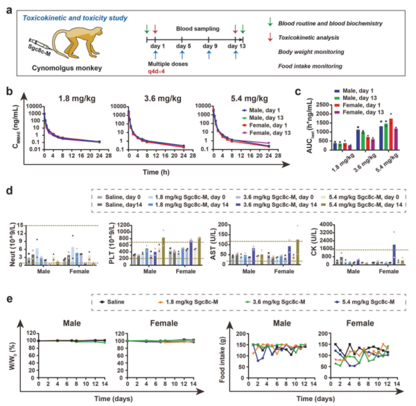 Sgc8c-M在食蟹猴中的重复剂量给药毒代动力学与毒性研究
