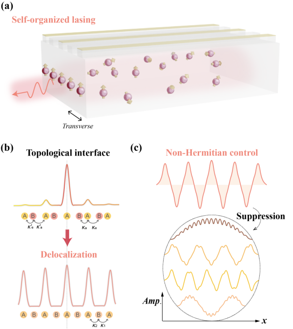 自组织(Self-organization)是指个体元素通过内部相互作用自发排列成有序模式的集体共振现象。然而,传统半导体激光腔中的混沌多模同步现象使其在实际应用场景中的性能受到限制。拓扑光子学起源于凝聚态物理中的拓扑物态理论,通过利用“拓扑不变量”描述光子晶体能带结构,为构建具有鲁棒性、单向性、强局域化的光子态提供了新范式。
