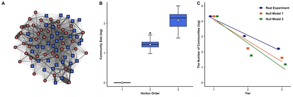 研究团队利用自动化条码追踪系统,在四个大型斑胸草雀混合群体(每群约80只个体)中,连续30天收集了数百万条个体位置与交互数据。这一技术使科研人员能够以秒级分辨率捕捉鸟类共栖、聚群等社会互动,超越了以往依赖人工观察的研究方式。分析发现,在个体水平上,斑胸草雀的社会关系呈现稳定分层,即每只鸟通常保持1-2个最亲密伙伴,相当于人类的“至交好友或伴侣”;维持6-7个亲密伙伴,类似“核心朋友圈”;拥有22-24个中等关系伙伴,对应“泛泛之交”。这些关系连续长时间保持高度一致,显示出稳定的社会选择倾向。分析表明,这些分层关系在种群层面,形成了类似分形结构的多层次社会网络,其扩展比例与人类、大象、狒狒、逆戟鲸等大型哺乳动物高度相似,这表明不同物种或受到共同的限制因子约束。