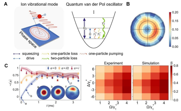 中国科学技术大学教授林毅恒团队,联合深圳大学教授李俊和杨晓东、德国斯图加特大学教授Eric Lutz,在量子自持振子研究方面取得进展。研究团队首次利用单个离子实验实现了量子范德波尔振子,演示了量子极限环的形成、量子同步及其增强等非经典行为。