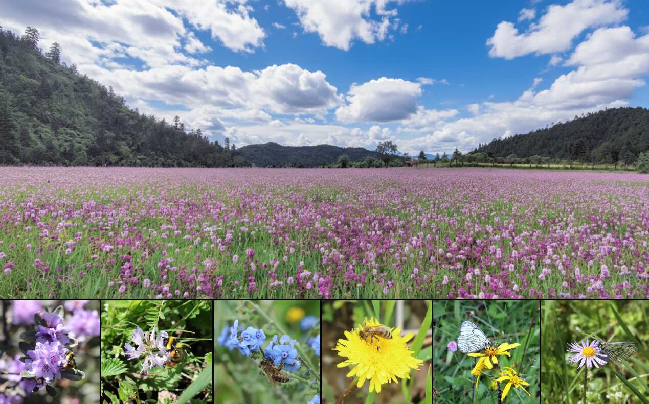 中国横断山脉地区高山草甸群落外貌及代表开花植物和传粉昆虫