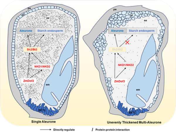 该研究丰富了糊粉层发育的分子调控网络,初步解释了淀粉代谢与糊粉层发育之间的联系,为高营养玉米育种提供了理论基础与材料支撑。