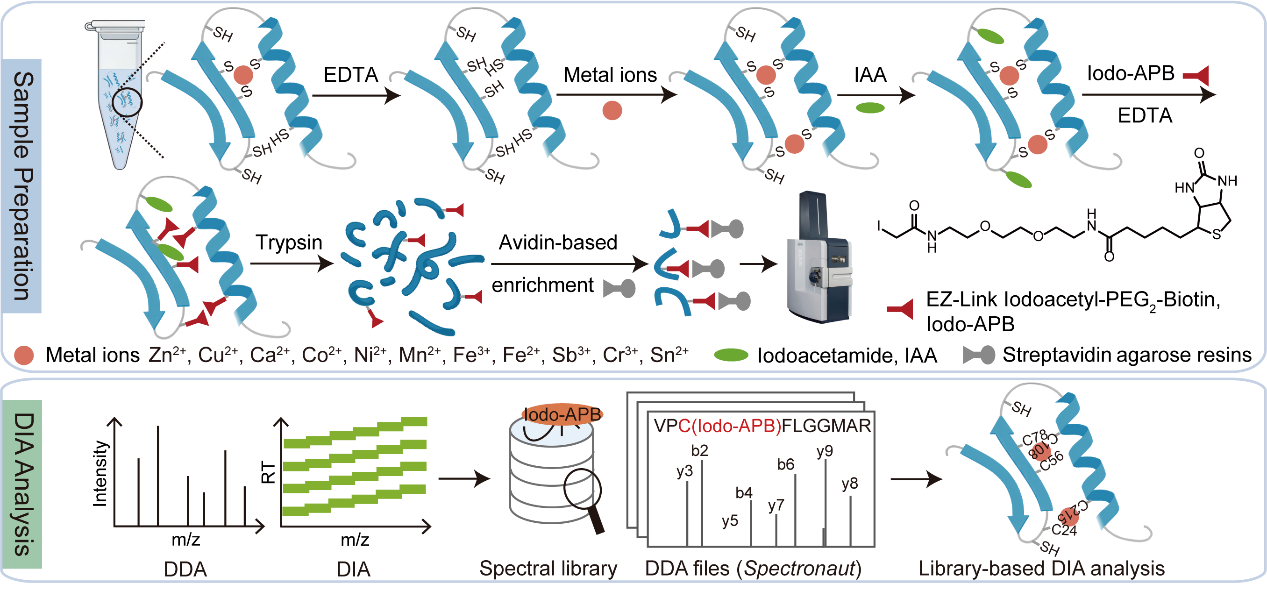 近日,中国科学院上海有机化学研究所研究员张耀阳团队,首次开发了新的半胱氨酸特异性金属蛋白组分析策略——Cysteine-centered Metalloproteome Profiling(CysMP)。该方法为解码人体金属蛋白质组提供了高灵敏、高通量、高特异性技术支持,并为系统研究金属蛋白质组提供了创新性解决方案。