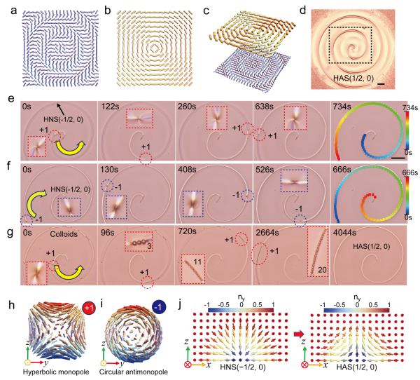 近日,中国科学技术大学联合香港科技大学,在向列相液晶体系中,实现了通过光控拓扑单极子介导的半斯格明子拓扑动态转换,并以单极子为载体,实现了胶体颗粒的可控输运。这一成果为拓扑物态的非平衡调控和微纳尺度物质输运提供了新途径。