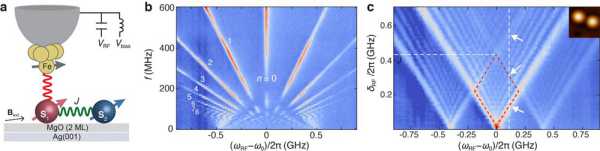 近期,中国科学院物理研究所/北京凝聚态物理国家研究中心特聘研究员杨锴团队,利用自主设计和搭建的电子自旋共振扫描隧道显微镜,建立了原子尺度自旋量子干涉的全电控调控新方法,实现了相互作用自旋体系中LZSM干涉的原子级探测与调控。该成果为实现快速、稳健的量子态操控奠定了实验基础,并为探究强驱动条件下的自旋多体量子态动力学提供了新途径。