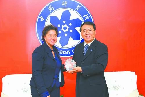 11月21日,中国科学院院长白春礼在京会见了到访的麦克米伦科教集团全球总裁安妮特•托马斯博士一行,就中科院的“率先行动”计划、开放兴院战略和双方在科学传播、期刊出版、论文开放获取和编辑人才培养等方面的合作交换了意见。会谈期间,托马斯代表自然出版集团向白春礼赠送了水晶牌,对中科院为全球科学、尤其是高质量科学研究做出的贡献表示祝贺。