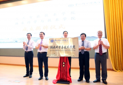 当天上午,白春礼、张杰和丁仲礼还共同为国科大新成立的人工智能技术学院和纳米科学与技术学院揭牌。丁仲礼在揭牌仪式上讲话。人工智能技术学院由中科院自动化研究所承办,计算技术研究所、沈阳自动化研究所、软件研究所、声学研究所等参与共建;纳米科学与技术学院由国家纳米科学中心承办,北京纳米能源与系统研究所参与共建。